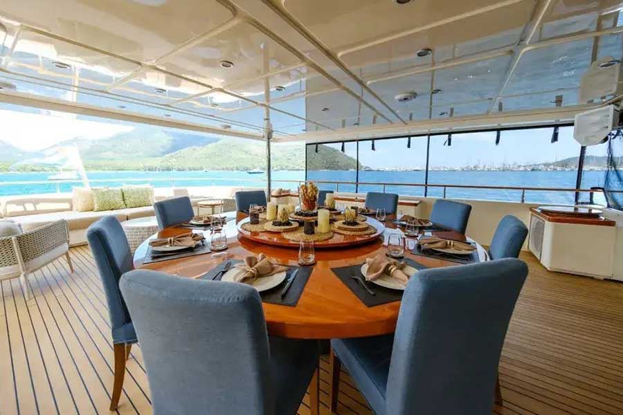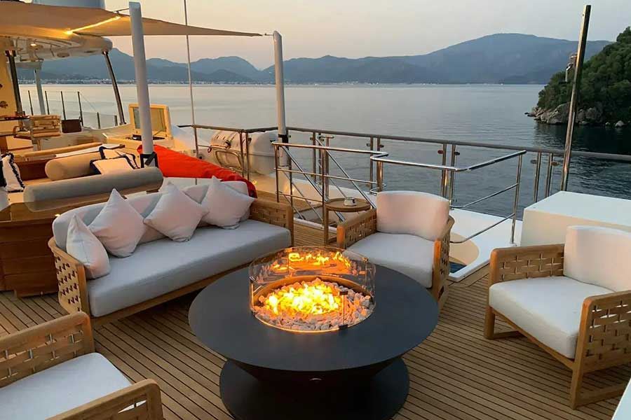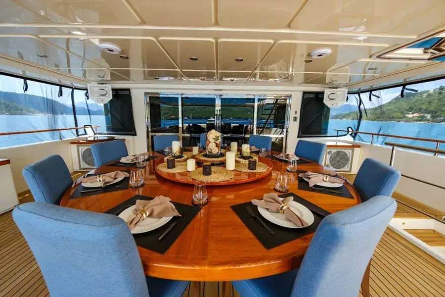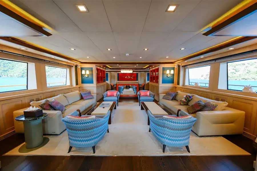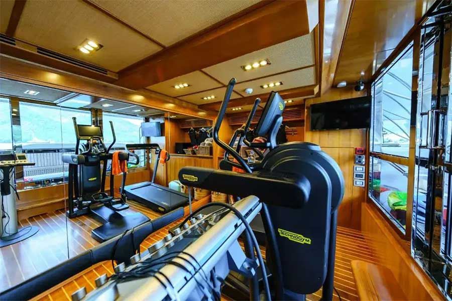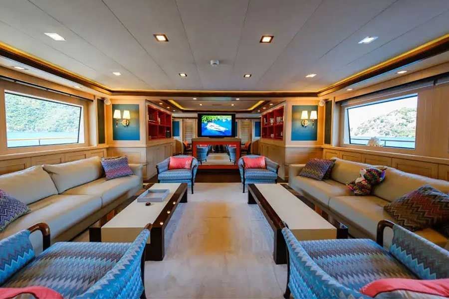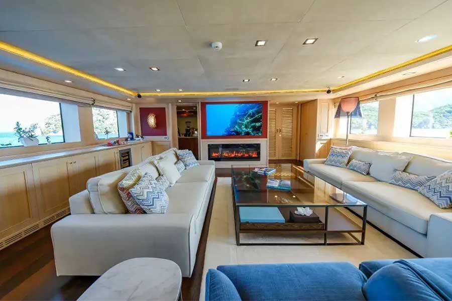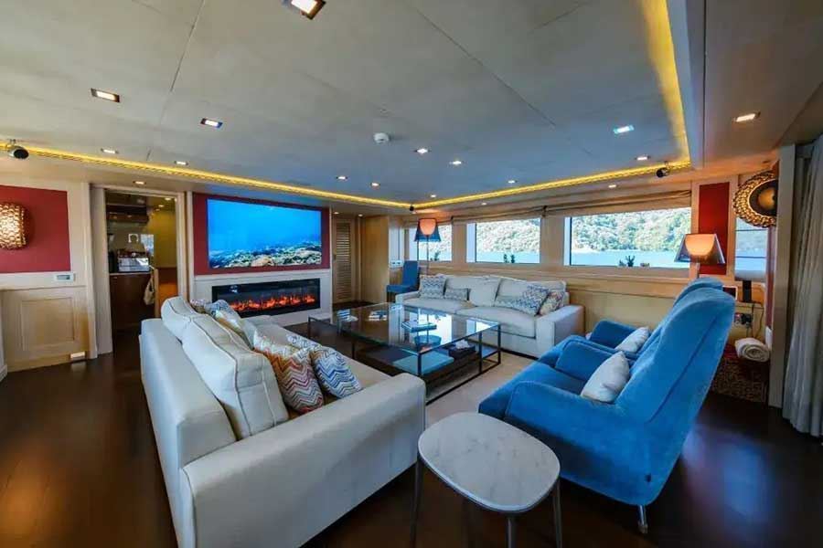 Giochi da tavolo, DVD – CD, TV LCD, Sistema TV satellitare, Sistema audio in tutto lo yacht, Accesso internet Wi-Fi, Sistema audio Hi-Fi, Stazione di attracco per iPad/iPod/cellulare