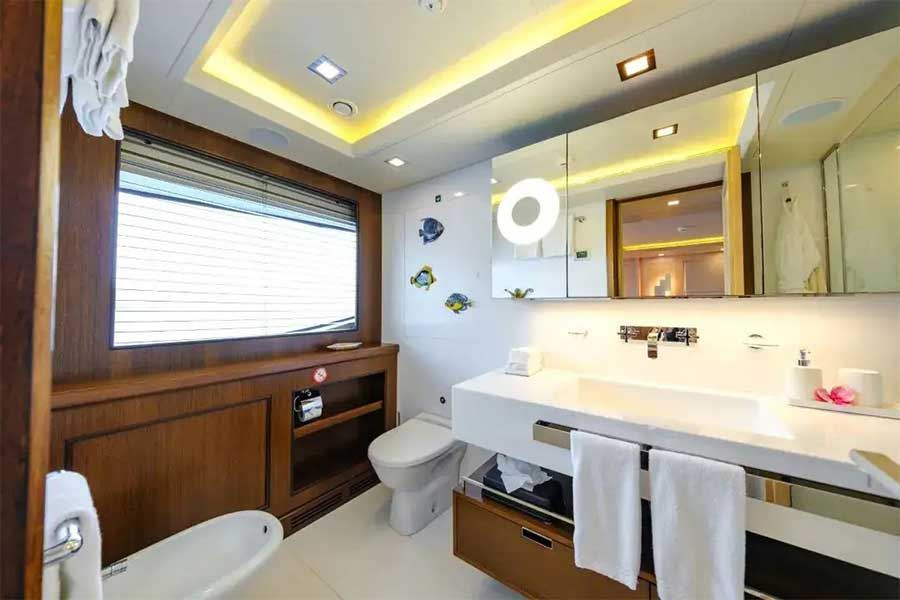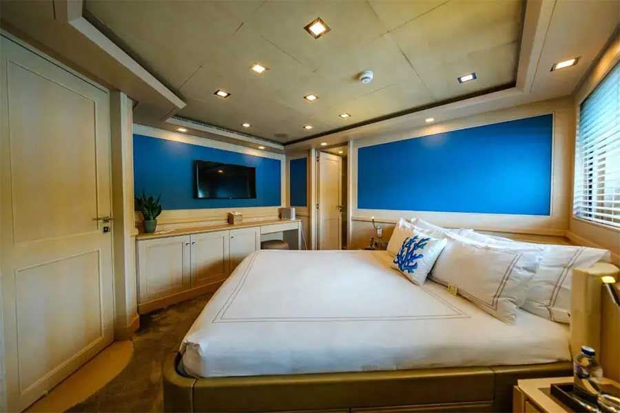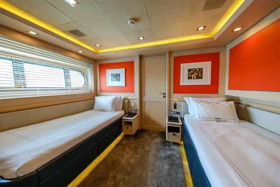 Configurazione della cabina:1 Master, 2 VIP, 1 matrimoniale, 1 doppia con letto Pullman