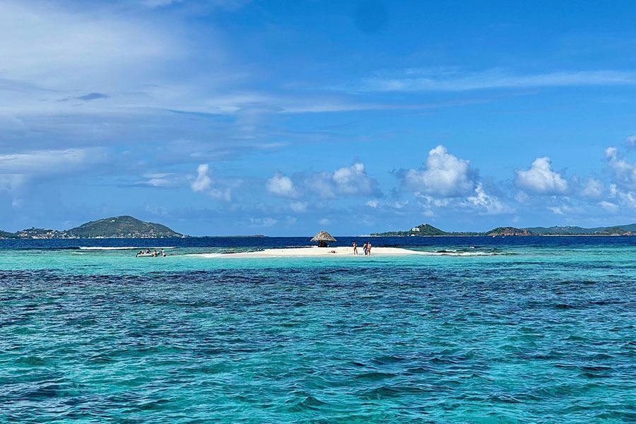 Passando tra Union Island e Palm Island, si arriva a Petit St. Vincent, una piccolissima isola privata da cui prende il nome anche il resort che la abita. La spiaggia è di sabbia bianchissima e i fondali sono ottimi per fare snorkeling. Distano 10 minuti di navigazione due splendidi isolotti di sabbia: Pinese e Mopion.