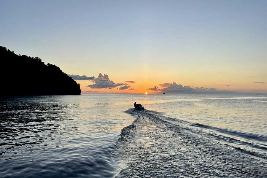 Fra una tappa e l’altra, le giornate saranno scandite da un susseguirsi di emozioni: un tuffo mattutino per una nuotata tra le tartarughe e i pesci della barriera corallina, la colazione con frutta e delizie tropicali, le veleggiate rilassanti sullo spazioso catamarano, le sfide di pesca al tonno. E, di sera, le cene romantiche in rada o in ristorante al cospetto del tramonto caraibico, le grigliate in spiaggia con aragoste e birra Caribe e i balli sotto le stelle al ritmo della musica reggae suonata dai ragazzi creoli.