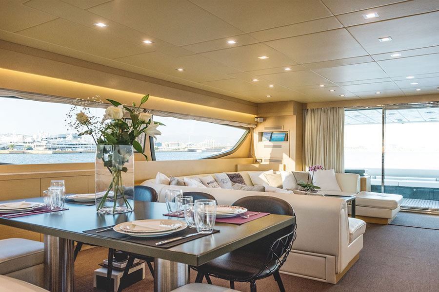 This Is Mine combina perfettamente gli interni moderni è lussuosi con eccellenti prestazioni di crociera. Questo splendido motor yacht di 27 metri può ospitare dieci persone nelle quattro cabine elegantemente arredate: una cabina armatoriale, una cabina VIP e due cabine doppie convertibili, tutte con servizi privati. L’equipaggio di quattro persone offre elevati standard di servizio e garantisce un soggiorno indimenticabile a bordo. Ampi e confortevoli gli spazi dedicati al relax e perfette le dotazioni disponibili, tra cui la selezione di attrezzature sportive acquatiche per momenti ricchi di avventura e divertimento.