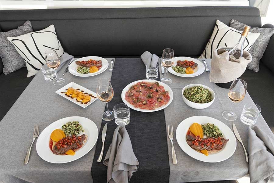 Il suo layout non ha eguali, a partire dalle impressionanti dimensioni dello spazio abitativo, fino alle ampisime 5 cabine totalmente indipendenti, per arrivare al grande salone luminosto su cui si apre l'elegante cucina. Altrettanto spazio e relax offono il flybridge e l'ampio pozzetto di poppa ideale per pranzi e mometi di convialità durante le soste. Concedetevi il lusso di godere dell'arte dell'ospitalità dell'euipaggio professionale e affiatato su questo yacht considerato da molti il catamarano dei viaggiatori per eccellenza!