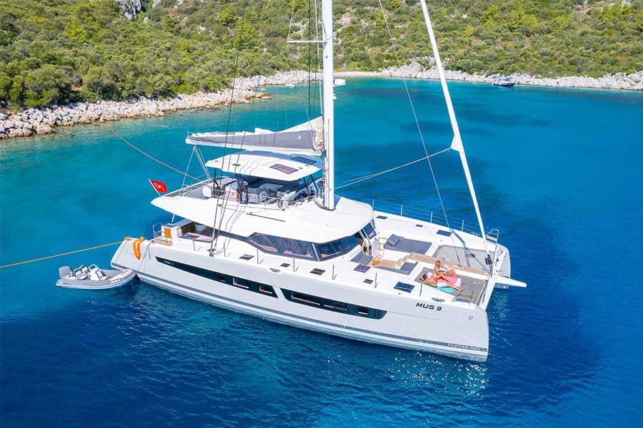 Salpa a bordo del MUS 3, la versione armatoriale del prestigioso Alegria 67 di Fountaine Pajot. Questo moderno catamarano del 2023, lungo 20,4 metri, offre un’esperienza di navigazione straordinaria nella Turchia meridionale e tra le isole del Dodecaneso, in Grecia.