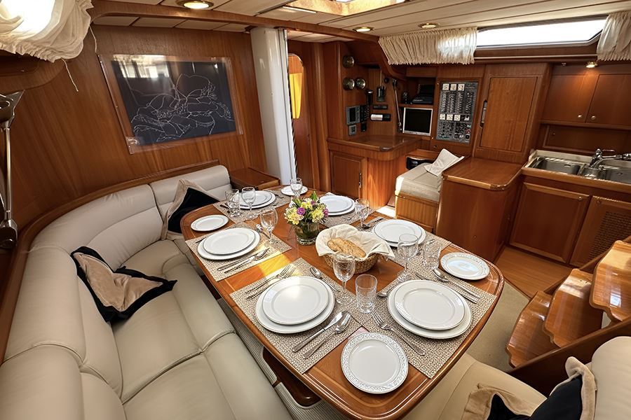 Le giornate iniziano con colazioni vista mare, tra caffè, succhi, yogurt, muesli e frutta fresca. Durante la navigazione vengono serviti pranzi leggeri e bilanciati, mentre la sera, all’ancora, la tavola diventa un momento di condivisione con piatti più strutturati e sapori autentici.