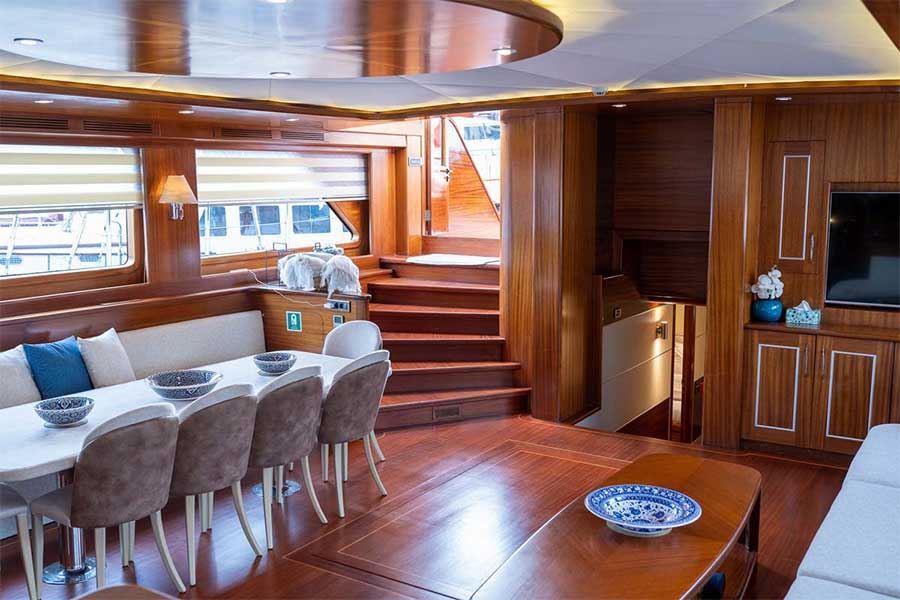 Un elegante yacht di 45 metri ideale per una crociera esclusiva nelle acque di Turchia e Grecia. Con 6 cabine spaziose (2 Master, 2 doppie e 2 twin), può ospitare fino a 12 persone, offrendo un ambiente raffinato e accogliente per una vacanza indimenticabile.