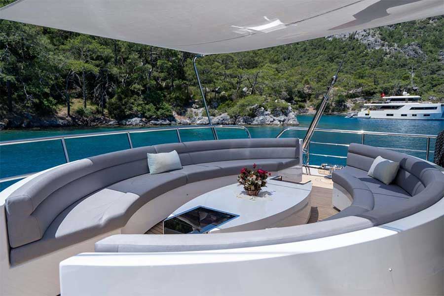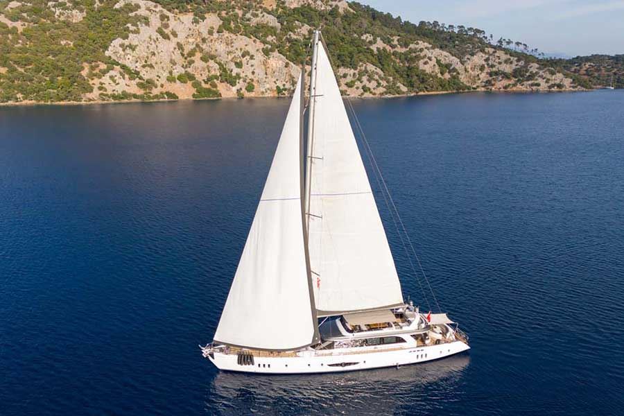 Naviga a bordo Long Island, un elegante motorsailer di 39 metri ideale per una crociera esclusiva alla scoperta della costa Turca. Costruito nel 2021, lo yacht offre spazi eleganti e moderni, perfetti per un soggiorno all’insegna della comodità e della relax. Le 5 cabine spaziose, tra cui una Master, 3 doppie e 1 twin, che possono ospitare fino a 10 persone, sono tutte dotate di TV, aria condizionata, impianto stereo e asciugacapelli.