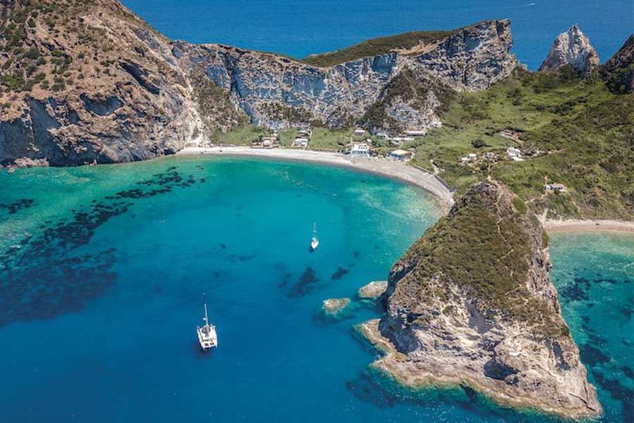 Rotta poi verso Palmarola, l’isola più selvaggia e incontaminata. La cena nella suggestiva Baia del Francese, con i piedi nella sabbia e il cielo stellato sopra di sé, è uno di quei momenti che restano nel cuore. Il giorno successivo si naviga attorno all’isola per scoprire grotte, faraglioni e fondali spettacolari, con sosta per un bagno ai Faraglioni di Punta Mezzogiorno.