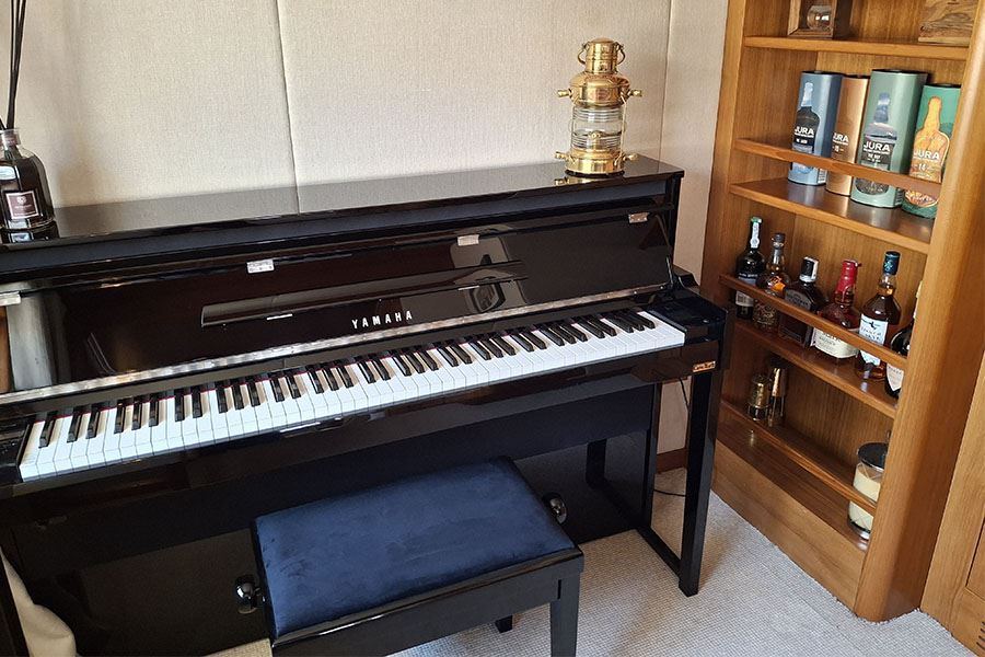 Produttore di acqua da 400 litri all'ora con filtraggio delle particelle da 10 micron e filtri al carbone. Pianoforte Yamaha full size