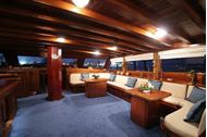 Questo caicco offre spazi generosi, lusso e comfort ai suoi ospiti, che possono nuotare, rilassarsi, prendere il sole in assoluta privacy. I suoi interni sono davvero spaziosi e con i colori caldi del mogano fa davvero sentire come a casa. Il design è molto sofisticato, come si può percepire anche dalle sue cabine, semplici ma decorate con gusto. Questo caicco però non è solo lussuoso, ma è anche un'imbarcazione di performance, che riesce a raggiungere delle ottime velocità di crociera, regalando un'indimenticabile esperienza di navigazione anche ai più esigenti.