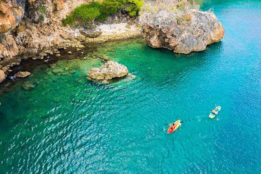A Crocus Bay, una baia meno frequentata e circondata da imponenti scogliere, si possono esplorare le grotte in kayak. Le sue acque limpide e tranquille la rendono perfetta per una sosta di relax e avventura.