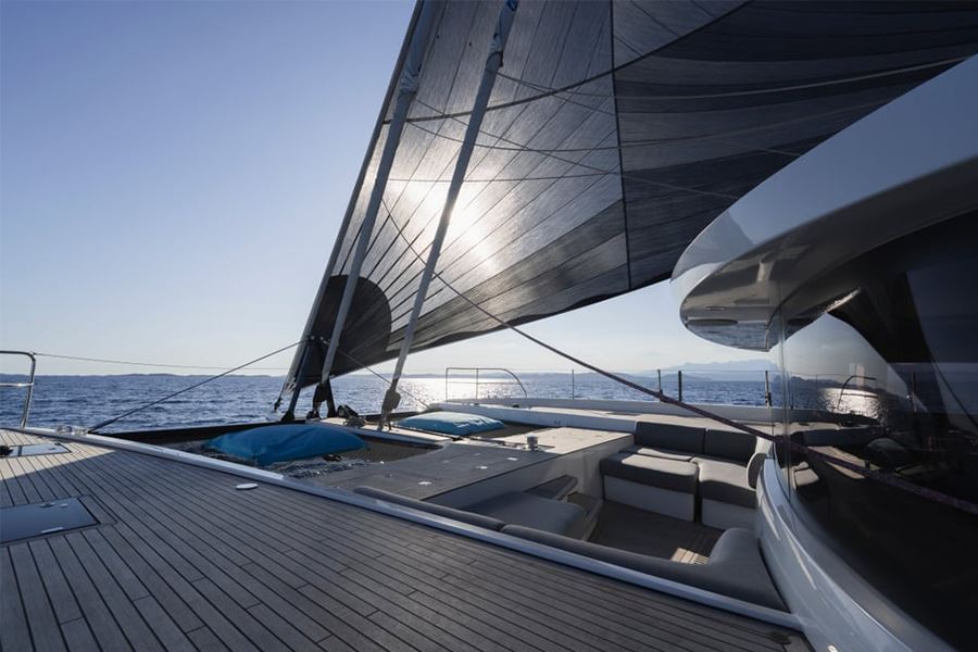 Armo velico: randa full batten, genoa avvolgibile, code 0, spinnaker asimmetrico, staysail, tormentina, lazy bag e lazy jack.