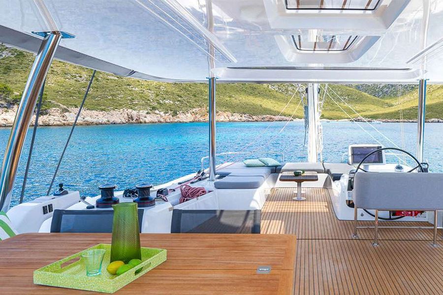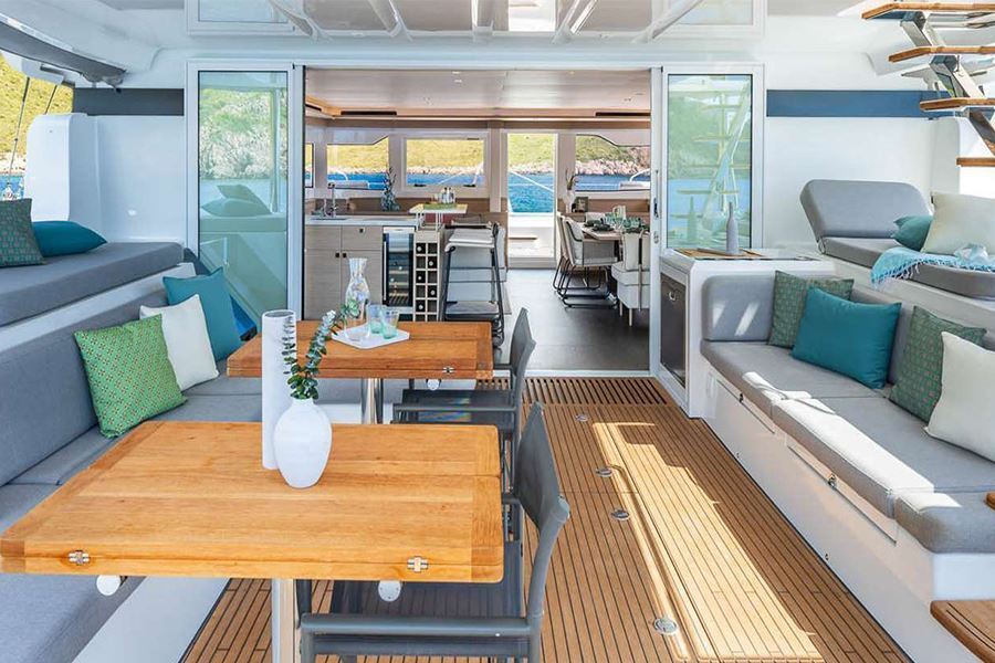 Gli ampi spazi open air, il sundeck panoramico e le piattaforme sul mare rendono questo catamarano perfetto per vivere una vacanza elegante, informale e completamente immersa nel mare.